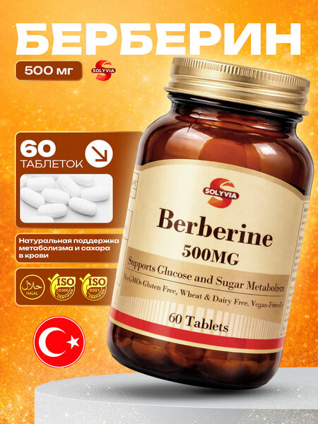 Solyvia Берберин 500 мг — натуральная добавка для поддержки обмена веществ и баланса уровня сахара в крови. Берберин — растительное активное вещество, способствующее нормальному глюкозному обмену и выработке энергии.