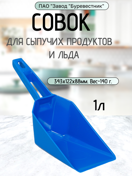 Совок 1л. для сыпучих продуктов - необходимая вещь на кухне у каждой хозяйки! С его помощью можно легко перемещать сыпучие продукты, такие как: мука, крупы, сахарный песок и другие в банку или другие емкости, отмерять нужное количество при приготовлении блюд. Сфера использования пищевого совка не ограничивается домашней кухней: изделие востребовано в продуктовых магазинах, где ведется торговля на вес, в местах общественного питания, на складах и зернохранилищах. Изготовлен из первичного пластика, что делает его пригодным к пищевому использованию. Совок полностью безопасен для здоровья человека и не имеет химических запахов. Размеры:343х122х88мм. Вес-140 г.