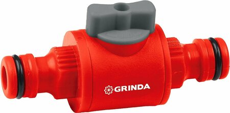 Соединитель-адаптер для шлангов с краном GRINDA. Применяется для соединения элементов поливочной системы, имеющих на концах быстросъемными соединители. Запорный клапан для регулировки напора воды.