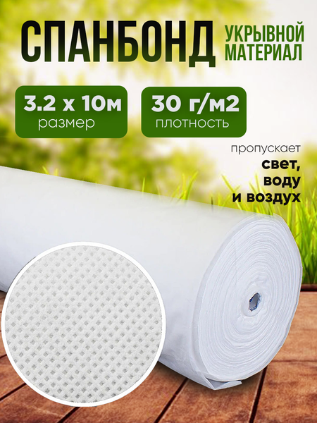 Спанбонд укрывной материал для растений плотность 30г/м2, размер 3,2х10м, белый