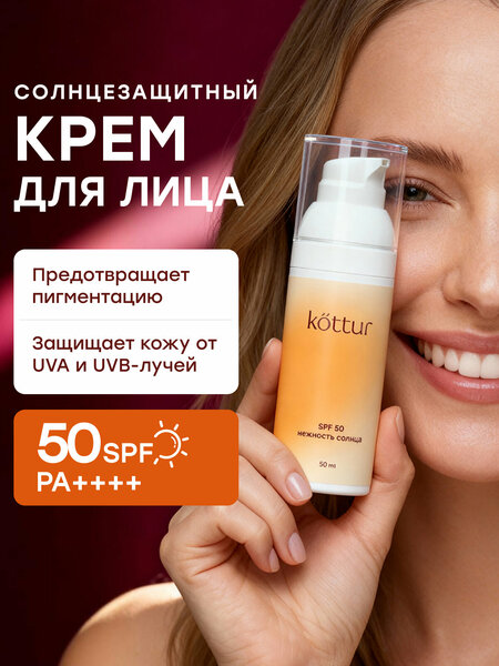 Kottur Солнцезащитный крем спф для лица увлажняющий SPF 50, 50 мл