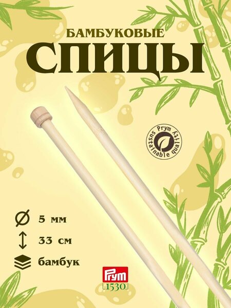 Прямые спицы Prym понравятся и начинающим, и опытным любителям вязания. Подходят для изготовления шарфов, свитеров, кардиганов, шапок и других вещей. Изготовлены из китайского бамбука, тщательно отполированы, что обеспечивает легкое скольжение пряжи. Концы спиц закруглены, они гладкие, без заусенцев не расщепляют пряжу и не травмируют пальцы. Каждая спица имеет маркировку размера, поэтому вы легко найдете нужный вариант. Ограничитель препятствует соскальзыванию петель. Спицы из бамбука имеют ряд преимуществ: – Достаточно прочные, не гнутся. – Приятные на ощупь, легкие, не раздражают кожу, во время вязания почти не стучат. – Подходят для путешественников. Многие авиакомпании разрешают брать бамбуковые спицы в салон лайнера вместе с ручной кладью. – Удобны для вязания из деликатной пряжи – вискозы, шелка, мерсеризованного хлопка. – Берегут суставы. Бамбуковой спицей легко подхватывать петли, не выгибая запястье. – Подходят для новичков. Петли на бамбуковых спицах не соскальзывают, такие спицы позволяют добиться желаемой плотности полотна. Диаметр спицы: 5 мм. Длина: 33 см. В упаковке 2 штуки.