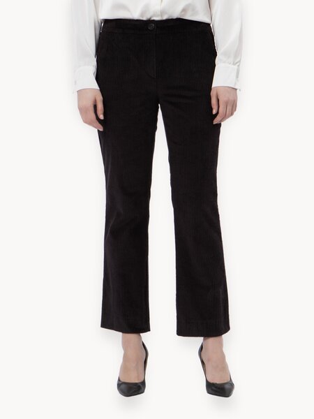 Полуприлегающий силуэт и укороченная длина брюк обеспечивают комфорт и свободу движений. Средняя линия талии и застежка на пуговицы и молнию добавляют практичности и удобства.