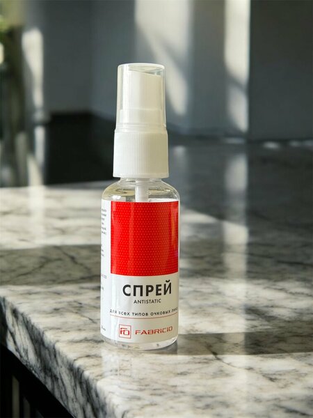 FABRICIO Спрей для очков — очищающий и антистатический спрей в компактной 50 мл бутылочке. Подходит для всех типов очков и линз. Быстро удаляет отпечатки пальцев, пыль и жир, оставляя прозрачность и профилактику запотевания. Удобный распылитель обеспечивает ровное распределение средства без капель. Компактный дорожный размер идеально подходит для дома, офиса и путешествий. Характеристики/технические параметры: