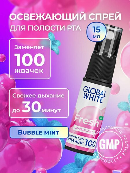 Спрей для полости рта GLOBAL WHITE Bubble mint, свежесть, 15мл