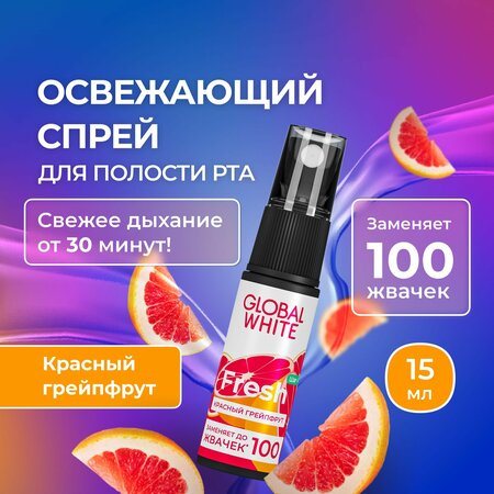 Спрей освежитель для рта GLOBAL WHITE Fresh со вкусом грейпфрута 15 мл
