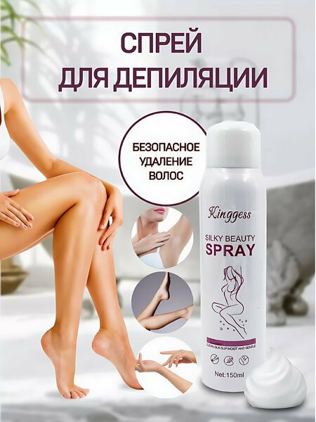 Спрей для депиляции обогащен витаминами, которые растворяют волосы у корней без боли и дискомфорта. Спрей очень прост в использовании. Продукт не загрязняет одежду и поверхности. Спрей настолько удобен и прост в использовании, что его легко брать с собой в дорогу. Спрей идеально подходит для рук, подмышек, спины и практически всех других частей тела. Silk Beauty Spray от Queenyes — специальный спрей для депиляции волос. При распылении на кожу образует густую пену, активные компоненты которой растворяют нежелательные волосы. Спрей действует не только на поверхности, но и проникает в волосяной фолликул и замедляет процесс роста новых волос. Содержит натуральные экстракты, которые бережно воздействуют на кожу и предотвращают раздражение. Спрей отлично справляется с вросшими волосками, а также ухаживает за кожей, делая ее невероятно гладкой и мягкой. Спрей можно использовать для удаления волос с ног, рук, подмышек и зоны бикини. Хорошо взболтайте спрей и надавите по направлению роста волос на теле. Держите распылитель на расстоянии 15–30 см от тела. Подождите не менее 10-15 минут и высушите влажным полотенцем или скребком. Спрей для депиляции/для вросших волос/для бикини/для депиляции/удаления волос.
