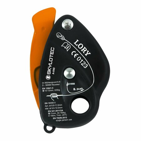 SKYLOTEC LORY — это хорошо зарекомендовавшее себя и надёжное полуавтоматическое страховочное устройство для спортивного скалолазания или установки страховочных верёвок. LORY оснащён механизмом автоматической блокировки, а также функцией экстренного торможения для дополнительной безопасности при спуске альпиниста. Устройство рекомендуется как новичкам, так и профессионалам. Большая ручка с функцией аварийного отключения для контролируемого спуска альпиниста. Блокирующий механизм не может быть отключен рефлексом захвата Подходит для канатов диаметром от 8,9 до 11 мм Характеристики: Артикул производителя: А-040 Стандарты EN 12841-C:2006, EN 15151-1:2012, EN 341-2A:2011, Масса: 0.41 кг Материал: Алюминий, Сталь Области применения: Промышленный альпинизм Цвет: Черный / оранжевый Рабочий диапазон температур: от -20 °C до 60 °C Максимальная скорость спуска : 2,00 м/с Максимальный совместимый диаметр каната: 12,00 мм Минимальный совместимый диаметр каната: 8,9 мм Максимальный срок службы: 30 лет Максимальная нагрузка: 250,00 кг Максимальное количество человек: 2 Функция антипаники: да Максимальная длина спуска: не ограничена Производитель: Skylotec (Германия)