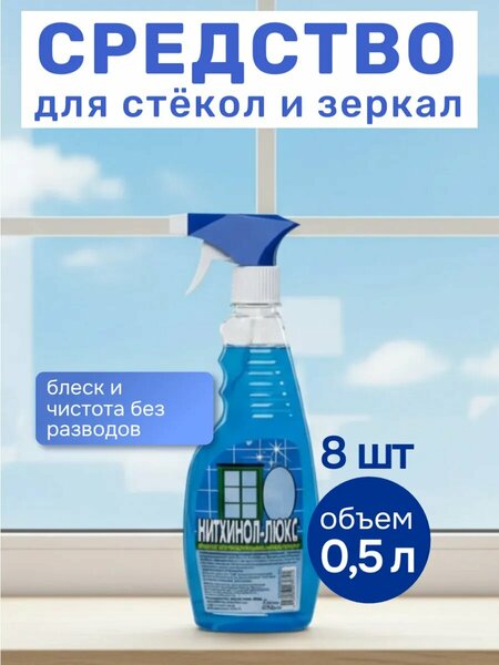 Нитхинол – эффективное средство для мытья стекол и зеркал. В комплекте 8 штук по 0.5 л. Универсальный спрей подходит для регулярной уборки дома, квартиры и офиса. Чистящее средство помогает поддерживать прозрачность и блеск стекол, зеркал, окон, стеклянных столов и витрин, быстро удаляет пыль, следы пальцев и бытовые загрязнения. Бытовая химия применяется для уборки стекол и зеркал дома, на кухне, в офисе, магазинах и хозяйственных помещениях. Моющий спрей легко наносится на поверхность или салфетку и протирается до идеальной чистоты, не оставляя разводов и липкой плёнки. Экономичный расход делает средство практичным для всего дома. Нитхинол – это стеклоочиститель для дома и офиса, который обеспечивает сияние стекол и зеркал, помогает справляться с загрязнениями и делает уборку быстрой и удобной. Чистящее средство подходит для мытья окон, стеклянных полок, витрин и других гладких поверхностей.