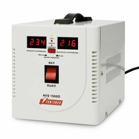 Powerman AVS 1500D - однофазный стабилизатор мощностью 1500ВА. Обеспечивает для подключенного оборудования уровень напряжения 220В (отклонения не превышают допустимые по ГОСТ 32144―2013 «Нормы качества электрической энергии»). В диапазоне напряжений сети 140В - 260В обеспечивает выходное напряжение 220В ± 8% . При слишком высоком или слишком низком напряжении сети, которое стабилизатор не может компенсировать, а также при значительной перегрузке он отключает нагрузку. Питание нагрузки подключается автоматически при восстановлении напряжения сети до рабочего диапазона, либо при снижении температуры. Подключение, после защитного отключения нагрузки или полного отключения сети, происходит с временной задержкой 6сек / 180сек. Высокая перегрузочная способность трансформатора и наличие функций защиты обеспечивает безопасную эксплуатацию в непрерывном режиме. Помимо регулировки напряжения стабилизатор значительно снижает уровень импульсных и высокочастотных помех, попадающих в нагрузку.