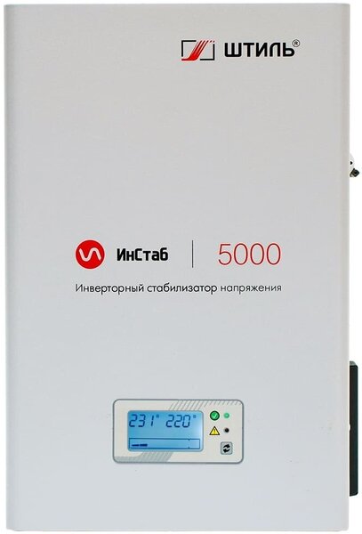 Однофазный инверторный стабилизатор напряжения Штиль ИнСтаб IS5000 мощностью 5000 ВА / 4500 Вт защищает от нестабильного напряжения в сети: отопительное, нагревательное и насосное оборудование; компьютеры и оргтехнику; телевизоры, видео- и аудиоаппаратуру; осветительные приборы; холодильное оборудование; охранную сигнализацию и электроинструменты. Этот электроприбор нового поколения с улучшенными возможностями стабилизации напряжения. В основу его работы заложен принцип двойного преобразования электроэнергии, благодаря чему модель: обеспечивает бесступенчатую и непрерывную стабилизацию входного напряжения в широком диапазоне (90-310 В); формирует на выходе напряжение с идеальным синусом и повышенной точностью (± 2%); питает нагрузку бесперебойно в течение 200 мс в случае кратковременного отключения электроэнергии. Стабилизатор разработан и производится в России, он отлично адаптирован под специфику работы электроприборов в российских электросетях. Качество его работы подтверждено сертификатом соответствия Таможенного союза (EAC). На модель распространяется двухлетняя гарантия производителя. Работает полностью бесшумно благодаря конвенционной (безвентиляторной) системе охлаждения и отсутствию механических элементов.