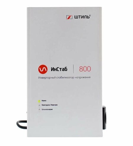 Однофазный стабилизатор напряжения инверторного типа ИнСтаб IS800 обеспечит надежную защиту от нестабильного напряжения электроприборов бытового или коммерческого назначения суммарной мощностью до 800 ВА/600 Вт, в частности: отопительного, нагревательного и насосного оборудования; компьютеров и оргтехники; телевизоров, видео- и аудиоаппаратуры; осветительных приборов; холодильного оборудования; охранной сигнализации и электроинстументов. При заказе необходимо выбрать значение выходного напряжения – 220 В или 230 В. Стабилизатор разработан и производится в России, он отлично адаптирован под специфику работы электроприборов в российских электросетях. Качество его работы подтверждено сертификатом соответствия Таможенного союза (EAC). На модель распространяется двухлетняя гарантия производителя. Модель IS800 – это стабилизатор нового поколения, обладающий лучшими техническими характеристиками по сравнению с устройствами других типов. Благодаря принципу двойного преобразования напряжения прибор обеспечивает: мгновенную реакцию на отклонения параметров сети (0 мс); бесступенчатую непрерывную стабилизацию входного напряжения в широком диапазоне (90-310 В) и с максимальной точностью (±2%); питание нагрузки напряжением идеальной синусоидальной формы независимо от качества сетевого напряжения. IS800 работает полностью бесшумно благодаря конвекционной (безвентиляторной) системе охлаждения и отсутствию механических элементов. Установка и подключение Модель IS800 имеет настенное исполнение – крепится на вертикальную поверхность на дюбель-гвозди или саморезы в зависимости от материала стены. К сети стабилизатор подключается с помощью евровилки. Для подключения нагрузки на боковой панели корпуса предусмотрена евророзетка. Индикация Контроль работы стабилизатора обеспечивается тремя светодиодными индикаторами: «Норма» – светится в штатном режиме работы; «Перегрев/перегрузка» – светится в случае перегрева или перегрузки стабилизатора; «Сеть не в норме» – светится при выходе сетевого напряжения за рабочие пределы (менее 90 В или более 310 В). Защита Модель IS800 оснащена многоуровневой электронной системой защиты от: короткого замыкания, перегрузки по выходу и внутреннего перегрева стабилизатора; критически пониженного или повышенного входного напряжения (менее 90 В или более 310 В); неполадок в работе самого устройства. После устранения указанных выше аварий происходит автоматическое восстановление работы стабилизатора. Встроенный варистор (2 кВ («корпус-провод»), 1 кВ («провод-провод»), срабатывание – 50 мкс) выполняет защиту от импульсных перенапряжений. Фильтры высоких частот защищают сеть от помех в диапазоне 150 кГц - 30 МГц и нагрузку (от помех между фазой и нейтралью частотой до 2,5 кГц). IS800 также оснащен автоматическим электронным байпасом, который переводит питание нагрузки на сеть при перегрузке или внутренних неполадках стабилизатора. Стабилизатор напряжения Штиль ИнСтаб IS350 230V имеет высокую точность стабилизации напряжения, что гарантирует надежную работу подключенных устройств. Он оснащен защитой от перегрузки, короткого замыкания и имеет функцию автоматического регулирования выходного напряжения. Это позволяет предотвратить повреждение оборудования при возникновении скачков напряжения и перегрузок в сети. Стаб
