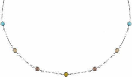Стальное колье в виде цепочки якорного плетения дополнено цветными вставками. Застежка - карабин. Регулируемая длина. Материал: нержавеющая сталь. Цвет: серебристый, желтый, красный, голубой. Габаритные размеры: длина 45-50см.