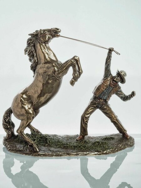 Почувствуйте азарт и свободу Дикого Запада с динамичной статуэткой «Ковбой, укрощающий лошадь» от бренда Veronese (модель WS‑882). Это не просто элемент декора, а художественное воплощение легендарного образа ковбоя — символа смелости, воли и неукротимого духа первопроходцев. Статуэтка станет выразительным акцентом в интерьере и подчеркнёт любовь владельца к вестернам, американской культуре и духу приключений. Идеальный выбор для ценителей стиля кантри, коллекционеров статуэток на тему Дикого Запада, поклонников вестернов и всех, кто ищет яркий, запоминающийся подарок с отсылкой к эпохе ковбоев и освоения новых земель. Основные характеристики: