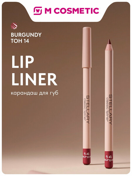 Карандаш для губ в деревянном корпусе создает яркий, насыщенный контур губ.