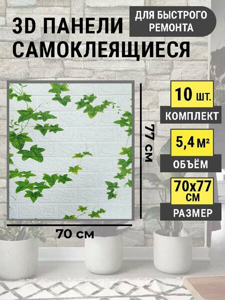 Стеновые самоклеящиеся панели 3D для стен 70х77 см "Плющ белый"