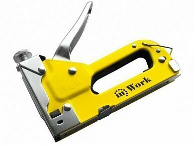 Для забивания скоб и гвоздей в дерево, фанеру, ДСП, пластик и прикрепления к ним различных материалов. Используется со скобами типа 53 (шириной 11,3 мм, толщиной 0,7 мм и длиной от 4 до 14 мм). Стальная конструкция, окрашенный корпус и хромированный магазин. Винтовой регулятор обеспечивает плавную регулировку силы удара. Все детали выполнены из металла. Резиновая вставка на ручке обеспечивает комфорт при работе. Быстрый и легкий доступ к механизму подачи скоб. Специальная ударопоглощающая вставка на корпусе. Кольцо для фиксации рычага в нижнем положении. Удобная загрузка крепежа в магазин. Материал: инструментальная сталь, резина.
