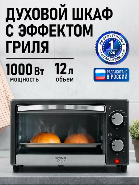 Духовка Stingray ST-EO115A представляет собой компактное и функциональное устройство, которое станет незаменимым помощником на вашей кухне. Мощные нагревательные элементы обеспечивают быстрый нагрев камеры объемом 12 литров, что позволяет приготовить самые разнообразные кулинарные шедевры без потери времени. Максимальная температура нагрева составляет 250°C, что позволяет готовить как горячие блюда, так и домашнюю выпечку с румяной корочкой. Духовка оснащена механическим управлением и таймером, который позволяет установить время приготовления до 60 минут. По окончании приготовления устройство издаст звуковой сигнал, а световой индикатор работы подскажет о готовности блюда. В комплект входят решетка и противень, что позволяет использовать духовку для приготовления разнообразных блюд. Внутреннее покрытие камеры выполнено из нержавеющей стали, что обеспечивает долговечность и простоту ухода за устройством. Дверца духовки открывается вниз, что облегчает доступ к готовому блюду. Духовка Stingray ST-EO115A обладает компактными размерами (высота 21,3 см, глубина 34 см, ширина 44,5 см) и весом всего 3 кг, что позволяет легко перемещать ее по кухне и устанавливать в любом удобном месте. Выбирая духовку Stingray ST-EO115A, вы получаете надежного помощника на кухне, который позволит вам радовать себя и своих близких вкусными горячими блюдами без лишних затрат времени и усилий.