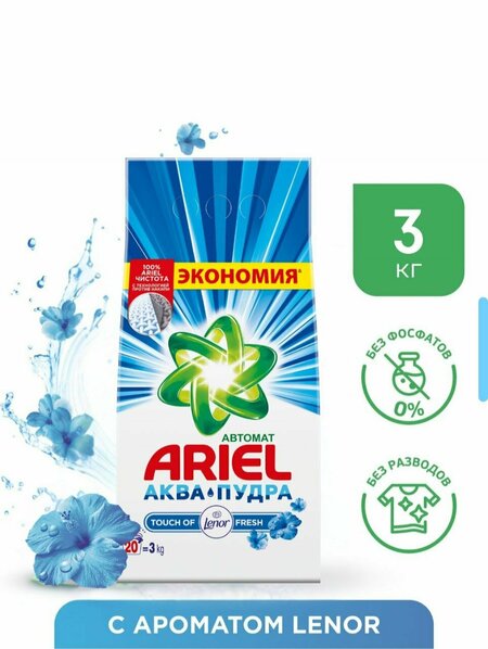 Стиральный порошок Ariel 3 кг-это отличное чистящее средство, разработанное на основе современных технологий, которое освежает вашу одежду при каждой стирке и сохраняет ее в чистоте и приятном состоянии. тиральный порошок Ariel 3 кг-это отличное чистящее средство, разработанное на основе современных технологий, которое освежает вашу одежду при каждой стирке и сохраняет ее в чистоте и приятном состоянии. Мощная формула Ariel глубоко проникает в волокна грязи, удаляя даже самые сложные пятна до корней. Стирка больше не будет для вас рутиной – это будет новый, приятный и продуктивный опыт. Этот порошок эффективно действует при любой температуре. Ариэль также хорошо себя чувствует в холодной воде, что позволяет экономить энергию. Вы уменьшите потребление электроэнергии, а ваша одежда сохранит свою мягкость, форму и цвет. тот порошок эффективно действует при любой температуре. Ариэль также хорошо себя чувствует в холодной воде что позволяет экономить энергию. Вы уменьшите потребление электроэнергии, а ваша одежда сохранит свою мягкость, форму и цвет. Ариэль всегда обеспечивает гигиеническую чистоту, сохраняя вашу одежду не только чистой, но и безопасной. Стиральный порошок Ariel 3 кг содержит современные ферменты, поверхностно-активные вещества, кислородные отбеливатели, полимеры и компоненты, придающие приятный запах. тиральный порошок Ariel 3 кг содержит современные ферменты, поверхностно-активные вещества, кислородные отбеливатели, полимеры и компоненты, придающие приятный запах. Благодаря сочетанию этих веществ онСтиральный порошок Ariel 3 кг содержит современные ферменты, поверхностно-активные вещества, кислородные отбеливатели, полимеры и компоненты, придающие приятный запах. Благодаря сочетанию этих вещ легко удаляет даже жирные, шоколадные, чайные, фруктовые соки и растительные пятна. Каждая гранула быстро растворяется в воде, не оставляя пятен или следов на одежде. Одежда, выстиранная с помощью Ariel, не только чистая, но и пахнет так же приятно, как свежевыстиранная. Специальные ароматические капсулы позволяют долго наслаждаться свежим, чистым ароматом в одежде. Ариэль 3 кг-удобный выбор для каждой семьи. 3-килограммовой упаковки хватит в среднем на 20-25 стирок. Он сочетает в себе долговечность, экономичность и качество. риэль 3 кг-удобный выбор для каждой семьи. 3-килограммовой упаковки хватит в среднем на 20-25 стирок. Он сочетает в себе долговечность, эконориэль 3 кг-удобный выбор для каждой семьи. 3-килограммовой упаковки хватит в среднем на 20-25 стирок. Он сочетает в себе долговечность, экономичность и качество. Упаковка компактная, легко открывается и изготовлена из экологически чистых материалов. Ариэль защищает не только вашу одежду, но и природу. Его состав не содержит фосфатов, не повреждает водные системы и оказывает более мягкое воздействие на кожу. Это делает Ariel экологически безопасным, современным и безопасным выбором. Его мощная очищающая формула сохраняет белизну белой одежды и не теряет прозрачности цветной одежды. С каждой стиркой вы не только видите, но и чувствуете чистоту. го мощная очищающая формула сохраняет белизну белой одежды и не теряет прозрачности цветно