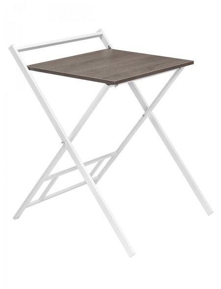 Стол под ноутбук, который решит проблему недостатка рабочих мест дома. Универсальный, компактный, при этом очень устойчивый и привычный по высоте - 73 см. При необходимости его можно сложить и убрать за шкаф, под кровать, за штору или в другое место. Ведь в сложенном состоянии глубина стола всего лишь 3,5см! Габаритные размеры в разложенном положении 64х75х81 см. В сложенном положении - 64х3,5х104 см . Размер столешницы 59,5х50 см. С комфортом можно разместить ноутбук, мышку, блокнот и даже чашку с кофе. Материал подстолья сталь, столешница изготовлена из качественной ЛДСП марки EGGER. Надежное стальное подстолье с достаточным пространством для ног. Цвет подстолья белый, столешница дуб графит. Поставляется в собранном виде, вам остается лишь разложить стол.