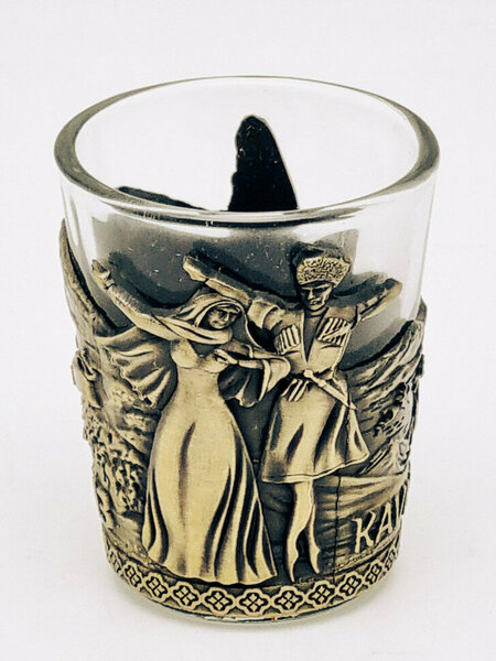 Оригинальная стопка, выполненная в духе кавказского этноса с рельефным рисунком. Стопка изготовлена из качественного упрочненного стекла. Она устойчива к повреждениям, не теряет свой блеск при частом использовании, а также не выделяет вредных веществ и полностью безопасна для пищевой продукции. Подставка из металлического сплава на основе цинка с гальваническим покрытием удивит вас своим качеством и высокой детализацией.