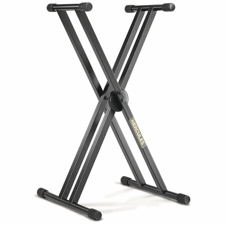 Hercules KS120B - двойная одноярусная Х-образная стойка для клавишных инструментов с автоматическим фиксатором высоты установки.