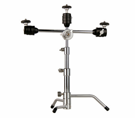 Легкая настольная стойка-тренога с перекладиной для компактных цифровых фото и видеокамер. Полностью выполнена из металла, что обеспечивает высокую прочность и надежность. Три шаровые мини-головки позволяют установить камеру и дополнительное оборудование (свет, микрофон), а также отрегулировать их положение. Оборудование крепится на стандартные штативные винты 1/4"-20. Стойка компактно складывается: все ножки выстраиваются в одну линию. Характеристики Максимальная нагрузка: 2 кг Максимальная высота: 53 см Минимальная высота: 28 см Длина перекладины: 34 см Диаметр перекладины: 10 мм Длина в сложенном виде: 30 см Размах ног базы: 22 см Количество секций: 3 Диаметр секций: 20, 15, 10мм Зажимы: винтовые Крепежный адаптер: шаровая мини-головка с резьбой 1/4" – 3 шт. Материал: алюминиевый сплав Вес: 980 г Размер упаковки 35 х 21 х 5 см Вес с упаковкой: 1,1 кг