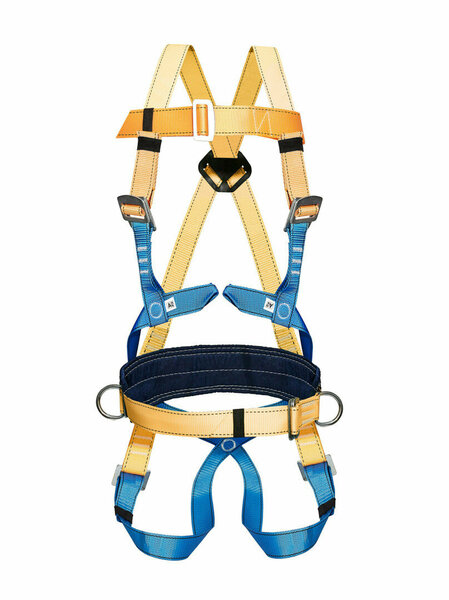 Состоит из ремня с пряжкой, разъёмных наплечных и набедренных лямок, кушака, двух D-колец на поясе (для удержания и позиционирования), одного на спине (для спасательных работ, экстренной эвакуации и страховки)и переднего элемента крепления (двух петель) для спасательных работ . Привязь упакована в водонепроницаемый пакет и содержит паспорт и инструкцию по применению. Широкий эргономичный кушак выполнен из 3D-сетки. На привязи установлена увеличенная наплечная рамка. Обхват пояса: 740-1440 мм. Кол-во точек крепления: 4 (кольцо на спине, петли на груди, два кольца на поясе для позиционирования). Ширина ленты: 45 мм. Статическая нагрузка: не менее 15 кН (1500 кгс). Температура использования: от -40°С до +50°С. Вес: 1,35 кг. Применение: для удержания от падения с высоты, позиционирования, ограничения и безопасного перемещения на высоте. Для останова падения работающего при срыве с высоты. Для спасательных работ. Срок хранения: 5 лет. ГОСТ Р ЕН 361-2008, ГОСТ Р ЕН 358-2008. ТР ТС 019/2011.