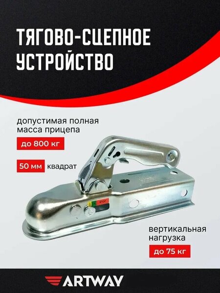Сцепное устройство ArtWay AW-50S750, на 800кг, квадрат 50мм, серебристое