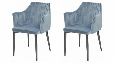 Комплект из 2-х стульев OTTAVA пудровый синий - антрацит Ширина: 58 см Глубина: 63 см Высота: 84 см Объём: 0,3 Цвет сиденья: Пудровый синий Цвет каркаса: Серый Материал каркаса: Металл Материал сиденья: Ткань Производитель: Мебель Китая Сиденье стула обито велюром, спинка стула декорирована строчкой в виде линий. Ножки стула - металл в цвете антрацит. Упакован - 2 шт./1 кор.