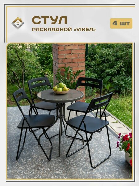 Стул складной для кухни со спинкой, набор 4 шт, цвет черный / пластиковый банкетный