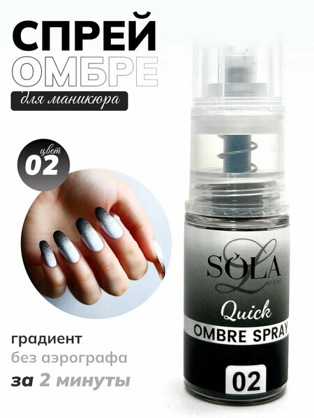 Спрей-омбре для маникюра Quick ombre spray от Solalove это настоящая находка для мастера маникюра! Цветной градиент ногтей как аэрографом, только без аэрографа. Сухой спрей станет достойной заменой аэрографа для маникюра. Создавайте омбре на ногтях лёгкими движениями руки. Данная коллекция отличается невероятной палитрой ярких оттенков и не оставит вас равнодушными. Красивый дизайн ногтей за считанные минуты теперь это возможно!