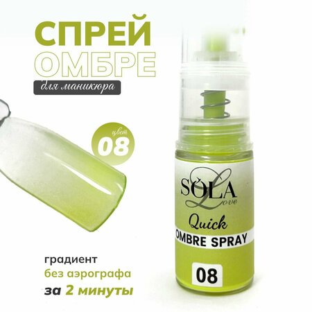 Спрей-омбре для маникюра Quick ombre spray от Solalove это настоящая находка для мастера маникюра! Цветной градиент как аэрографом, только без аэрографа. Спрей станет достойной заменой аэрографа для маникюра. Создавайте омбре на ногтях лёгкими движениями руки. Данная коллекция отличается невероятной палитрой ярких оттенков и не оставит вас равнодушными. Красивый дизайн ногтей в считанные минуты теперь это возможно! Спрей омбре для дизайна ногтей - это инновационный продукт, который позволяет создать красивый и стильный дизайн ногтей всего за несколько минут. Спрей имеет специальную формулу, которая обеспечивает ровное нанесение и быструю сушку, что делает процесс создания градиент эффекта на ногтях максимально простым и удобным. Благодаря своей уникальной формуле, спрей сохраняет яркость и насыщенность цвета на ногтях длительное время и не выцветает. Этот продукт подходит как профессионалам, так и начинающим мастерам маникюра, и является отличным выбором для тех, кто хочет быстро и легко создать эффектный дизайн ногтей. Равномерное нанесение и интенсивный цвет делают спрей омбре идеальным решением для создания уникального и модного маникюра. Создавайте градиент лёгкими движениями руки!