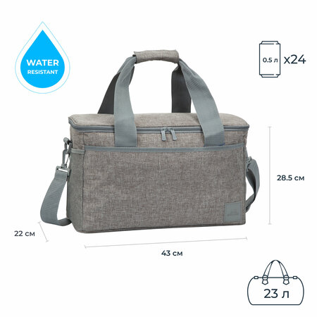 • Размер 43*28,5*22 см / Внутренний объем 23 л • Разработана для переноски банок 0.5 л, наиболее распространенных в Европе • Система компактного хранения без внешних ответных частей • Внутренний сетчатый карман на молнии для мелких предметов • Три наружных кармана • Светлая цветовая гамма для уменьшения нагревания под лучами солнца • Немаркий внешний материал с водотталкивающей пропиткой • Герметичная подкладка • Съемный регулируемый плечевой ремень с надежным креплением в дно сумки, с подушкой для плеча
