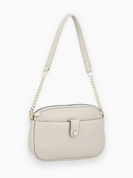 Маленькая женская сумочка на одной ручке-цепочке на плечо, через плечо (кросс-боди), с дополнительным регулируемым ремешком. Материал верха - экокожа премиум качества. Материал подкладки - полиэстер. Одно отделение на молнии. Внутри: карманы для карточек на передней стенке и карман на молнии на задней стенке. Снаружи: карман на магнитной кнопке спереди. Цвет фурнитуры - золото. Женская сумка кросс-боди через плечо из экокожи - практичный и стильный аксессуар, который станет вашим верным спутником в повседневной жизни. Эта чудесная маленькая сумочка от известного французского бренда David Jones идеально подходит для современных женщин, которые ценят комфорт и функциональность. Она небольшого размера, но вмещает все необходимое: телефон, кошелек, ключи, косметику и многое другое. Благодаря удобным карманам вы сможете организовать свои вещи для быстрого доступа. Она отлично держит форму и не выгорает на солнце, что делает ее стойкой и долговечной. Аксессуар выполнен из мягкой и плотной экокожи, которая прекрасно выглядит и при этом доступна по цене. Модный дизайн изделия подчеркнет ваш стиль и женственность. Черный цвет и классическая форма делают эту модель универсальной, она отлично подойдет к любому наряду и стилю одежды. Она также оснащена регулируемым ремнем, чтобы вы могли настроить его под свой размер и предпочтения.