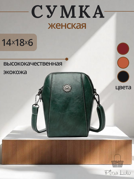 Достоинства:Материал сумки нежный под кожу. Цвет зелёный красивый. Фурнитура хорошая. Два отделения. Маленький кармашек под замочком. Длина ремня отличная, можно регулировать. Недостатки:Нитки торчали неостриженные небольшие. Ремень скукожился сильно, нужно разглаживать. Комментарий:Размер меньше ожидаемого., но имеет место быть, если сумочек много. Цвет понравился. Телефон маленький кошелечек, ключи, салфетки,зеркальце, помада..Я такую и хотела. Ниточки остригла, а форма Я думаю выправится позже. Благодарю за оплату баллами❤️💛🤗