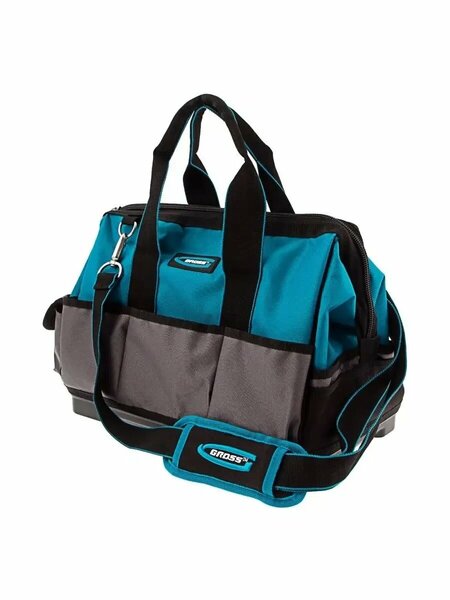 Сумка для инструмента Gross Handwerker 90272 габаритами 400 х 225 х 310 мм, с 26 карманами, пластиковым дном и наплечным ремнем, будет полезна слесарям, монтажникам, электрикам, а также автомобилистам. В основном отделении, внутренних и внешних карманах поместятся все необходимые инструменты. Технические характеристики сумки GROSS 90272 Тип - сумка Материал - полиэстер Наплечный ремень - да Набор - нет Металлическая ручка - нет На колесах - нет Количество карманов - 26 Открытая - нет Пластиковое дно - да С жестким каркасом - нет Сумка скрутка - нет Габариты без упаковки - 400х225х310 мм Вес нетто - 1.05 кг Основной цвет - серый/голубой Рисунок - однотонный Преимущества сумки GROSS 90272 Износостойкость — сумка изготовлена из прочного полиэстера Надежность — жесткое пластиковое дно выдерживает значительные нагрузки Удобное перемещение — сумка комплектуется плечевым ремнем с карабинами повышенной прочности