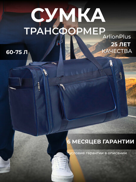 Сумка дорожная Arlion Plus — идеальный аксессуар для современных путешествий, сумка в дорогу! Она изготовлена из материала оксфорд нейлон — прочной и плотной ткани с влагоотталкивающей пропиткой. Ручки из крепкой синтетической стропы и качественная фурнитура делают багажную сумку надежной и износостойкой. Литое крепление в форме треугольника и металлические карабины гарантируют долгий срок службы и повышенную прочность. Плечевой ремень оснащён мягкой накладкой, которая предотвращает натирание. Удобная мягкая ручка на застёжке - липучке обеспечивает высокий уровень комфорта. Основное отделение мужской и женской сумки для поездок позволяет разместить все объемные вещи, а вместительные внешние карманы на молнии способствуют организации предметов, которые должны быть всегда под рукой. Также спортивный аксессуар имеет боковое расширение на 14 см и жесткий картонный вкладыш на дно, который помогает сохранить форму даже при полной загрузке. Модель устойчива к погодным условиям и внешним повреждениям, благодаря чему идеально подойдёт для тренировок, рыбалки и туризма. Сумка - трансформер станет незаменимым спутником в поездках для людей, которые ценят надежность и комфорт в каждой детали!
