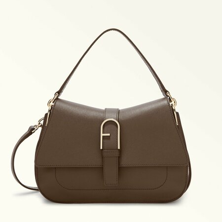 Элегантная и в то же время практичная модель Furla Flow отличается компактной трапециевидной формой и изогнутыми очертаниями. Эту универсальную модель на все случаи жизни можно носить в руке, на плече или через плечо. Она выполнена из мягкой и гладкой кожи наппа и украшена декоративной пряжкой в форме легендарного логотипа Arch. - Открытый внутренний карман - Открытый внешний карман сзади - Короткая ручка из кожи сверху - Длинный съемный регулируемый ремень из кожи - Застежка с клапаном и магнитной кнопкой - Тисненый логотип Furla
