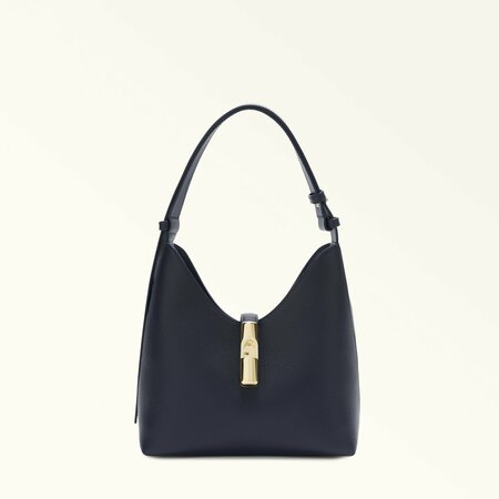 Мягкий силуэт и непринужденный облик сумки-хобо Furla Goccia S придают ей изысканный и современный характер. модель, выполненная из гладкой, шелковистой и роскошной на ощупь кожи, достаточно вместительна, чтобы вы могли взять с собой все самое необходимое. новая фурнитура цилиндрической формы, напоминающая гирю и украшенная культовым логотипом arch, дополняет ремешок завершающим акцентом. - Декоративная застежка с логотипом Furla в виде арки - Перфорированный логотип Furla - 2 внутренних плоских открытых кармана/1 карман на молнии - Несъемный/регулируемый кожаный ремень + плечевой ремень