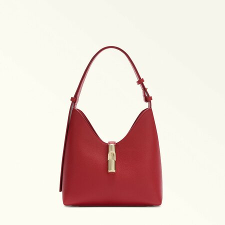 Мягкий силуэт и непринужденный облик сумки-хобо Furla Goccia S придают ей изысканный и современный характер. модель, выполненная из гладкой, шелковистой и роскошной на ощупь кожи, достаточно вместительна, чтобы вы могли взять с собой все самое необходимое. Новая фурнитура цилиндрической формы, напоминающая гирю и украшенная культовым логотипом arch, дополняет ремешок завершающим акцентом. - Декоративная застежка с логотипом Furla в виде арки - Перфорированный логотип Furla - 2 внутренних плоских открытых кармана/1 карман на молнии - Несъемный/регулируемый кожаный ремень + плечевой ремень