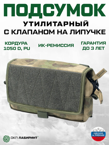 Подсумок утилитарный с клапаном на липучке (мультикам) производства ОКП «Лабиринт» предназначен для хранения и переноски медикаментов или любых других мелких предметов. Подсумок крепится на груди или в другом подходящем месте.