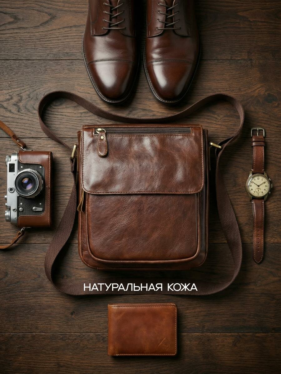 Достоинства:Быстрая доставка, хороший размер и качество кожи. Комментарий:Сумка отличная, размер хороший, кожа очень мягкая. Карманы вместительные, молнии работают хорошо. Классно пахнет кожей. Ремень тканевый, но очень плотный. Мужу очень понравился подарок.