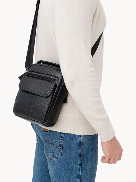 Сумка кожаная через плечо FAUSTINI мужская черная - стильный и функциональный аксессуар для повседневного использования. Изготовленная из натуральной кожи, она обеспечивает долговечность и прочность, а также подчеркивает индивидуальность своего владельца. Вместительное внутреннее пространство позволяет удобно разместить все необходимые вещи - от документов и планшета до телефона и ручки. Модель с уникальным дизайном позволяет носить ее как на плече, так и на поясе, обеспечивая максимальный комфорт при передвижении. Приятная на ощупь зернистая кожа с водоотталкивающим покрытием защищает содержимое сумки от дождя и сохраняет ее свежесть и привлекательность даже после длительного использования. Сумка кожаная через плечо мужская - практичный аксессуар, который станет незаменимым спутником на каждый день.