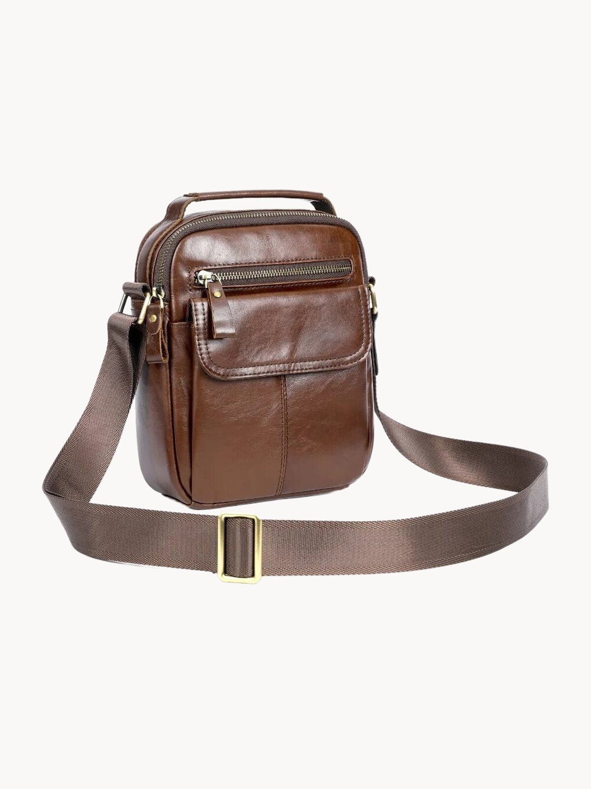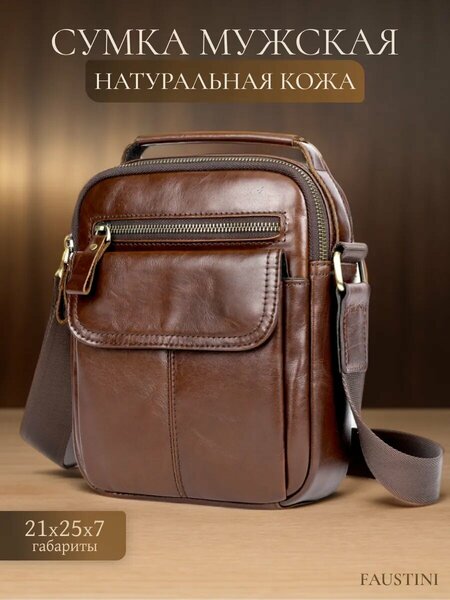 Сумка кожаная через плечо FAUSTINI коричневая мужская барсетка – стильный и функциональный аксессуар для мужчин, выполненный из натуральной кожи коричневого цвета. Гладкая фактура кожи придает сумке элегантный вид, а полужесткий каркас обеспечивает хорошую форму и сохранность содержимого. Модель оснащена внешним карманом на молнии для удобного хранения ключей или телефона, а внутренний карман на магните обеспечивает безопасное хранение важных документов. Плечевой ремень и регулируемый ремень позволяют носить сумку через плечо или в руке, обеспечивая комфортное использование в различных ситуациях. Застежка на молнии и магните гарантирует безопасность содержимого сумки и удобство использования. Сумка кожаная через плечо FAUSTINI - это сочетание стиля, функциональности и качества, которое подойдет для повседневного использования в любое время года.