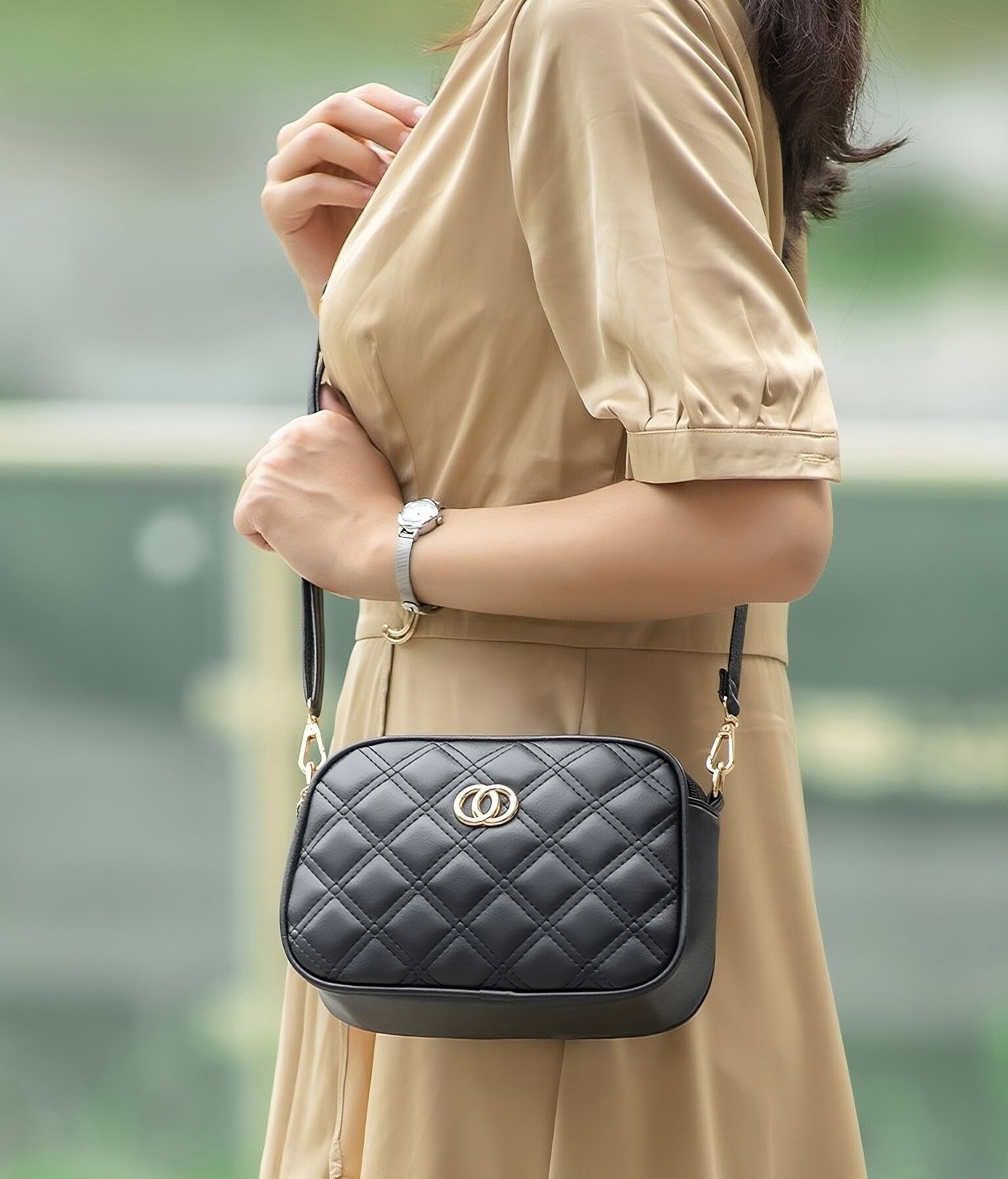 Сумка женская через плечо от OLLema: стиль и функциональность Женская сумка через плечо - маленькая кроссбоди модель, выполнена в черном цвете, который легко сочетается с различными нарядами и аксессуарами. Она выполнена в классическом и привлекательном стиле, что делает ее отличным решением как для подростков, так и для взрослых женщин. Фактурный материал придает сумке женской элегантный вид и делает ее приятной на ощупь. Размеры сумки кросс-боди составляют 22 х 16 х 7 см, что делает ее компактной и удобной для ношения. В тоже время сумка через плечо довольно вместительна. Сумка женская через плечо изготовлена из качественной искусственной кожи, что обеспечивает ей прочность и долговечность. Этот материал также обладает водоотталкивающими свойствами, что делает сумку практичной в любую погоду. Регулируемый широкий ремень позволяет оптимально подобрать необходимую длину (максимум 120 см.), добавляет изысканности и стиля. Молодежная сумка кросс-боди компактного размера и лаконичного дизайна будет отлично смотреться и в повседневном ношении и с вечерним нарядом. Модная женская сумка вместит в себя все необходимые вещи: документы, телефон, небольшую косметичку, ключи. Мягкая стильная сумка женская через плечо отлично подойдет к любому образу: классическая одежда, городской стиль, спортивный стиль, casual. Выбирая сумку женскую через плечо от OLLema, вы получаете стильный аксессуар, который будет служить вам долгое время и станет незаменимым помощником в повседневной жизни.