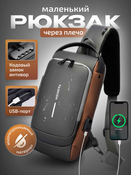 Мужской рюкзак с одной лямкой стильный и многофункциональный городской аксессуар. Подходит для путешествий, прогулок и поездок. Водонепроницаемый мини рюкзачок выполнен из прочной, водоотталкивающей ткани, что гарантирует безопасность Ваших документов и телефона даже в непогоду. Кодовый замок антивор исключает возможность случайного раскрытия, обеспечивая дополнительную защиту. Вместительный компактный кроссбоди понравится старшекласснику или студенту. Барсетка имеет много отделений, потайные и боковые карманы. Удобная широкая лямка позволяет носить сумку кросс-боди на спине, на груди или через плечо. Может быть настроена по длине в зависимости от индивидуальных предпочтений и комфорта мальчика подростка. Красивый эстетичный дизайн и коричневый цвет добавляет шарма и привлекательности. Модный однолямочный небольшой ранец сочетается с любым стилем одежды, молодежный, подростковый или взрослый. Ппрактичный для работы, в офис или универ, как ручная кладь в самолет, а также в повседневной жизни. Слинг это отличный подарок для любимого парня, мужу и папе.