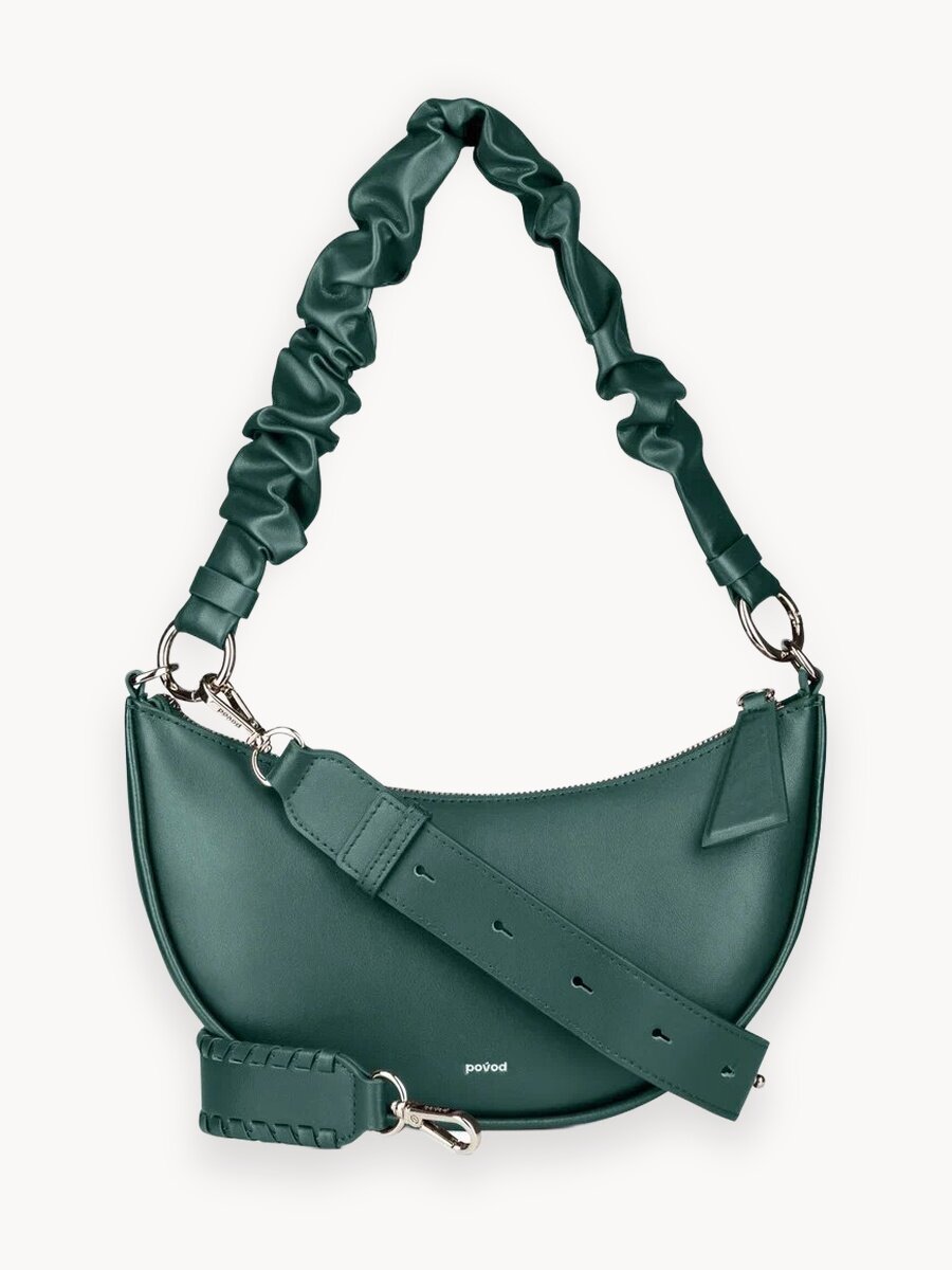 Модель-бестселлер в оттенке благородного в цвете хвойного леса из гладкой матовой кожи. Универсальная, элегантная, практичная “Луна” легко трансформируется благодаря двум съемным ремням. Носите её как сумку-багет на плече с коротким драпированным ремнем или как удобную кросс-боди через плечо. Она станет идеальным аксессуаром как для повседневных, так и для спортивных образов. Внутри — продуманное пространство: одно основное отделение, карман на молнии и внутренний карман для мелочей. Всё, что нужно, всегда под рукой: смартфон, кошелек, документы и даже место для небольшого набора косметики или крема для рук. Подкладка из переработанных рыболовных сетей — вклад в экологичное использование ресурсов.