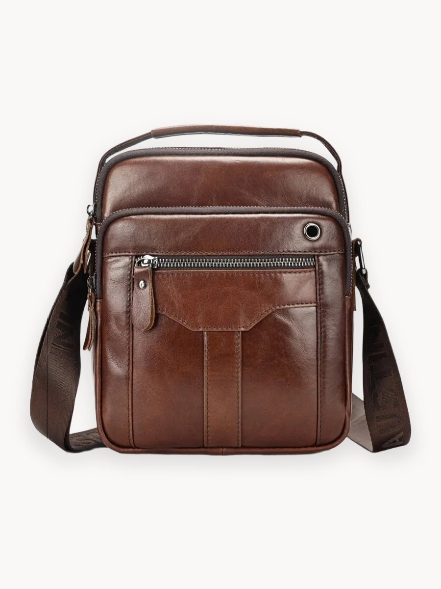 Сумка изготовлена из качественной натуральной кожи, что обеспечивает долговечность и прочность аксессуара. Темно-коричневый цвет и гладкая фактура придают сумке стильный и элегантный вид. Вместительное внутреннее пространство позволяет удобно разместить все необходимые вещи, включая документы, планшет, телефон и ручку. Модель с уникальным дизайном подходит для учебы, работы и деловых поездок, обеспечивая быстрый доступ ко всем нужным предметам. Удобство и комфорт – вот что предлагает барсетка со своими многочисленными карманами и двумя большими отделениями внутри. Приятная на ощупь кожа с мягкой текстурой и водоотталкивающим покрытием обеспечивает защиту от дождя и сохраняет свежесть и привлекательность даже после длительного использования. Размеры сумки: высота – 24 см, ширина – 19 см, глубина – 9 см. Застежка на молнии гарантирует сохранность содержимого. Не упустите возможность приобрести этот уникальный аксессуар, который станет вашим незаменимым спутником на каждый день.