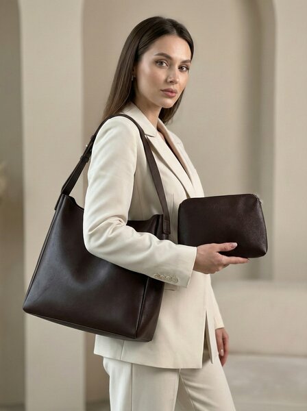 Достоинства:Очень Крутая сумка , за такую цену особенно ! Искала что то большое ( для контейнеров с едой на работу , и при этом женственное и элегантное ) , также очень круто что есть доп сумочка, которую можно взять с собой на обед с кошельком или до магазина или в туалет ) также туда складываю косметику, ключи, и карты с деньгами ( мелочи , которые могут потеряться в сумке ! И это сокращает поиски 😁 при этом она вместительная , можно положить даже мак бук, но при этом не громоздкая! Моя базовая любимая сумка 🩷